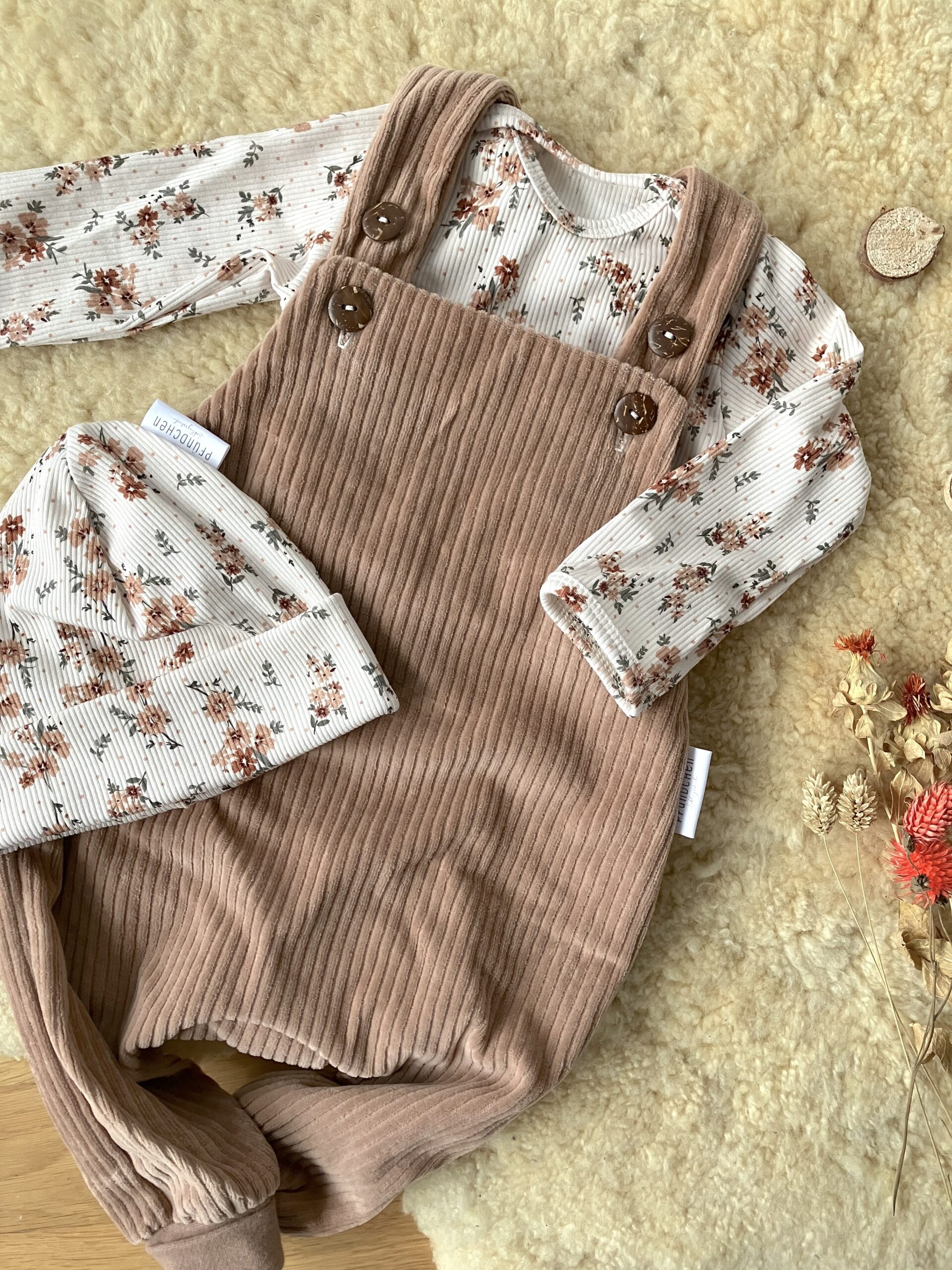 Beispielsweise enthält ein Geschenkpäckli eine kuschelige Baggypant aus feinem Bio-Cordnicky, kombiniert mit einem perfekt abgestimmten Body. Auch herzige Latzhosen, bequeme Sweater oder verspielte T-Shirts findest du in den Päckli – immer in stimmigen Kombinationen, die das Herz höherschlagen lassen.